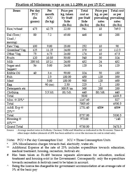 For tackling the demand of the Government employees for making the minimum salary in the range of Rs. 10000/- per month the Commission has followed a multi pronged approach. Firstly it worked out the minimum monthly requirements for the family of lowest paid employee It has based it’s calculations keeping in view recommendations of the 15th International Labour Conference . The expenses when calculated on a family size of three units which is the expected family size for a job entrant came out in range of Rs.5500/-per month.